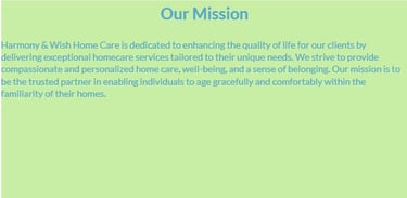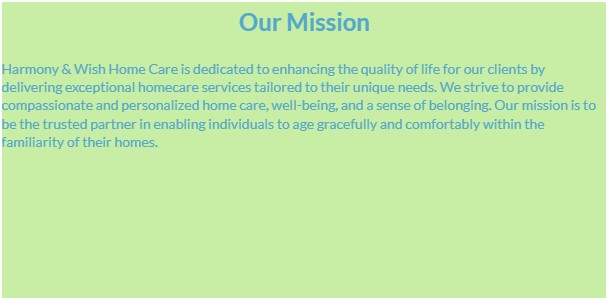At Harmony & Wish Home Care, we believe that everyone deserves the opportunity to live a fulfilling life in the comfort of their own home, and our mission is to make that a reality. Our agency is more than just a provider; we are a compassionate community dedicated to enhancing the quality of life for individuals through personalized and comprehensive home care services. We are here to meet your unique needs with unwavering commitment and expertise.